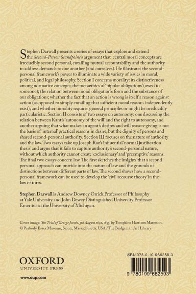Introduction I: Morality 1: Morality's Distinctiveness 2: Bipolar Obligation 3: Moral Obligation: Form and Substance 4: 'But It Would Be Wrong' 5: Morality and Principle II: Autonomy 6: Because I Want It 7: The Value of Autonomy and Autonomy of the Will III: Authority and Law 8: Authority and Second-Personal Reasons for Acting 9: Authority and Reasons: Exclusionary and Second Personal 10: Law and the Second-Person Standpoint 11: Civil Recourse as Mutual Accountability (co-authored with Julian Darwall) Works Cited Index