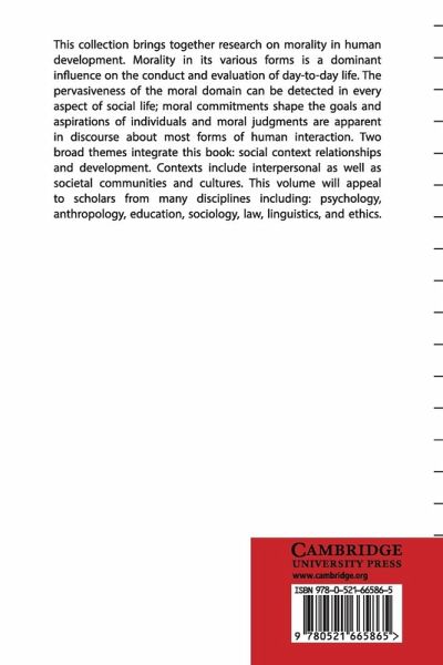 This collection brings together research on morality in human development. Morality in its various forms is a dominant influence on the conduct and evaluation of day-to-day life. The pervasiveness of the moral domain can be detected in every aspect of social life; moral commitments shape the goals and aspirations of individuals and moral judgments are apparent in discourse about most forms of human interaction. Two broad themes integrate this book: social context relationships and development. Contexts include interpersonal as well as societal communities and cultures. This volume will appeal to scholars from many disciplines including: psychology, anthropology, education, sociology, law, linguistics, and ethics.