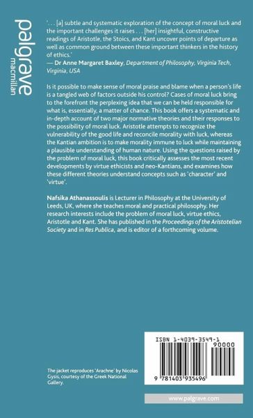 Acknowledgements Abbreviations, Sources and Translations Introduction PART 1: MORAL LUCK Introduction Luck Moral Luck: Examples Moral Luck: A Definition? Conclusion A Note on Style PART 2: ARISTOTLE ON CONSTITUTIVE LUCK Preliminaries Constitutive Luck The Case of Bill Budd and Claggart Natural Tendencies and Cultivated Dispositions Conclusion PART 3: ARISTOTLE ON DEVELOPMENTAL, SITUATIONAL AND RESULTANT LUCK Introduction The Case of Askolnikov Developmental, Situational and Resultant Luck Conclusion PART 4: ARISTOTLE AND REASON Introduction Immunity to Luck Reason Choice and Voluntary Conclusion PART 5: THE STOICS Introduction On the Passions and the Self-sufficiency of the Moral Life On Nature and Fatalism A Solution to the Problem of Moral Luck? Conclusion PART 6: KANT ON LUCK Introduction Kantian Immunity from Luck The Intelligible World Interpreting Kant on the Intelligible/Sensible Distinction PART 7: KANT ON VIRTUE Kantian Virtue Habit and Moral Examples The Doctrine of the Mean Virtue, Vice and Weakness of Will The Role of Inclinations Kantian Character Conclusion PART 8: VIRTUE ETHICS AND NEO-KANTIANS: SLOTE, HURSTHOUSE AND HERMAN Introduction Virtue Ethics Slote Slote on Luck Critique of Slote Hursthouse Hursthouse on Luck Hursthouse on Reason Modern Kantian Ethics: Herman Critique of Herman Conclusion PART 9: CONCLUSION Moral Luck From Aristotle or Kant to Aristotle and Kant Two Pictures of Human Life A Further Distinction Responsibility Conclusion Bibliography