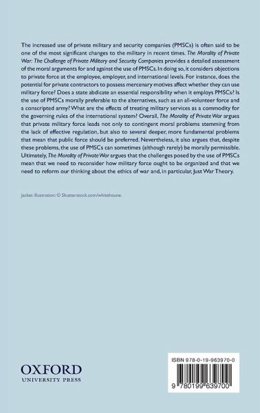 The increased use of private military and security companies (PMSCs) is often said to be one of the most significant changes to the military in recent times. The Morality of Private War: The Challenge of Private Military and Security Companies provides a detailed assessment of the moral arguments for and against the use of PMSCs. In doing so, it considers objections to private force at the employee, employer, and international levels. For instance, does the potential for private contractors to possess mercenary motives affect whether they can use military force? Does a state abdicate an essential responsibility when it employs PMSCs? Is the use of PMSCs morally preferable to the alternatives, such as an all-volunteer force and a conscripted army? What are the effects of treating military services as a commodity for the governing rules of the international system? Overall, The Morality of Private War argues that private military force leads to not only contingent moral problems stemming from the lack of effective regulation, but also several deeper, more fundamental problems that mean that public force should be preferred. Nevertheless, it also argues that, despite these problems, PMSCs can sometimes (although rarely) be morally permissibly used. Ultimately, The Morality of Private War argues that the challenges posed by the use of PMSCs mean that we need to reconsider how military force ought to be organized and to reform our thinking about the ethics of war and, in particular, Just War Theory.