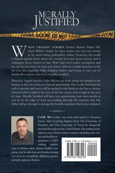 When tragedy strikes former Marine Sniper Michael Miller's family, he has no choice but to take justice into his own hands. His crusade quickly becomes more brazen however, endangering those closest to him. With high level police corruption at play and no one he can trust, he must join forces with an outside detective to do his own investigation while dodging bullets and trying to prove he is morally justified. Detective Angela Sanchez is on a crusade of her own when she crosses paths with Michael Miller and an unusual partnership quickly forms. Her loyalty between her oath to protect and serve will be pushed to its limits as she has to choose between what is right in the eyes of the law versus the eyes of man. Morally Justified will have you questioning your own morals as you learn the extremes one father will go through to avenger the horrific injustices he has endured.