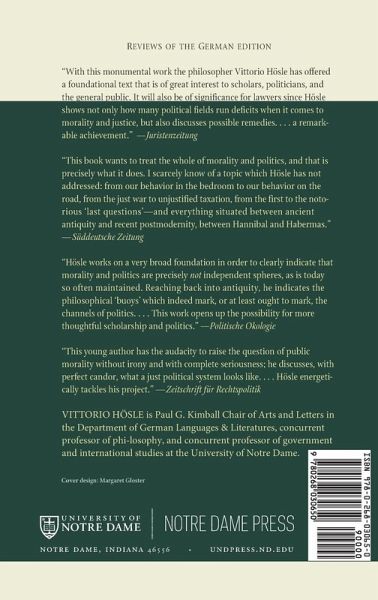 In this ambitious work Hösle attempts no less than an outline of a political ethics for the twenty-first century. He not only raises the question of the relationship between morals and politics but proposes a relatively complex answer to it. European conviction that political philosophy must be based on ethics and the more modern notion that ethical arguments themselves have a political function. Hosle's goal is to create a concrete political ethics for the situation in which humanity finds itself today. This book is divided into three parts. In the first, Hosle defines the problem through a comprehensive survey of political thought. In the second, he addresses the character of human nature, of power, and of the state and its history. Finally, he deals with the philosophy of law as well as with questions concerning the right of resistance and just war theory. Sweeping in its scope and forceful in its conclusions, Morals and Politics will reshape the way many think about politics and political philosophy.
