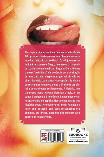 Morango e chocolate ficou famoso na década de 90, quando transformou -se em filme de sucesso mundial, indicado para o Oscar. David, jovem revolucionário, conhece Diego, homossexual assumido, patriota e nacionalista. Surge então o dilema: o dever ¿patrióticö da denúncia ou a aceitação de uma amizade inesperada, que vai abrindo os olhos dos dois para outras concepções de vida e outros valores humanos, como o direito de ser plural e de manifestar -se livremente. A história, que transcorre numa Havana histórica e bela, é um canto à amizade e à tolerância, humanamente calorosa e cheia de espírito. Nesta e nas outras três histórias deste livro comovente, Senel Paz pega o leitor pelo coração, com seus personagens ora cômicos, ora líricos, daqueles que marcam para sempre as nossas vidas.