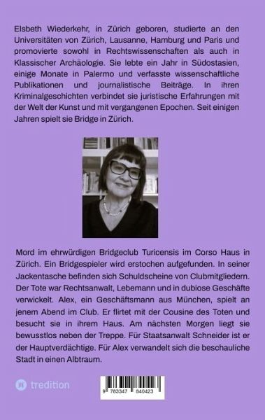 Mord im ehrwürdigen Bridgeclub Turicensis im Corso Haus in Zürich. Ein Bridgespieler wird erstochen aufgefunden. In seiner Jackentasche befinden sich Schuldscheine von Clubmitgliedern. Der Tote war Rechtsanwalt, Lebemann und in dubiose Geschäfte verwickelt. Alex, ein Geschäftsmann aus München, spielt an jenem Abend im Club. Er flirtet mit der Cousine des Toten und besucht sie in ihrem Haus. Am nächsten Morgen liegt sie bewusstlos neben der Treppe. Für Staatsanwalt Schneider ist er der Hauptverdächtige. Für Alex verwandelt sich die beschauliche Stadt in einen Albtraum.