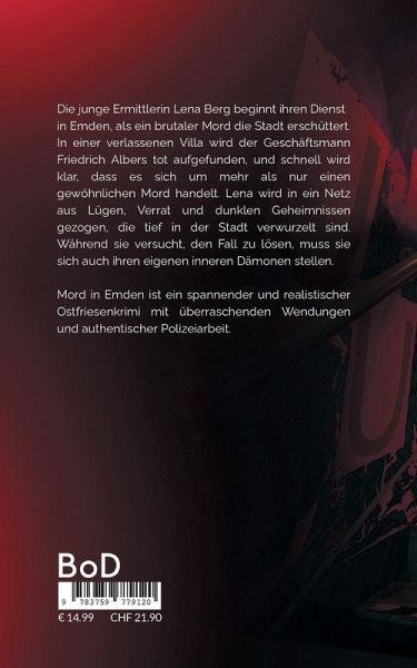 Die junge Ermittlerin Lena Berg beginnt ihren Dienst in Emden, als ein brutaler Mord die Stadt erschüttert. In einer verlassenen Villa wird der Geschäftsmann Friedrich Albers tot aufgefunden, und schnell wird klar, dass es sich um mehr als nur einen gewöhnlichen Mord handelt. Lena wird in ein Netz aus Lügen, Verrat und dunklen Geheimnissen gezogen, die tief in der Stadt verwurzelt sind. Während sie versucht, den Fall zu lösen, muss sie sich auch ihren eigenen inneren Dämonen stellen. Mord in Emden ist ein spannender und realistischer Ostfriesenkrimi mit überraschenden Wendungen und authentischer Polizeiarbeit.