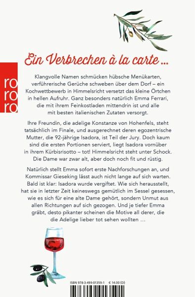 Die Italienerin Emma Ferrari betreibt im bayerischen Dörfchen Himmelsricht einen Feinkostladen mit italienischen Spezialitäten. Nun soll im Dorf ein Kochwettbewerb stattfinden und es freut sie besonders, dass ihre Freundin, die adelige Konstanze von Hohenfels es ins Finale geschafft hat. In der Jury sitzt Konstanzes Mutter, die selbstsüchtige 92-jährige Gräfin Isadora. Als das Event startet, zieht der leckere Duft der Gerichte durch das Publikum und plötzlich kippt Isadora mitten in ihren Risottoteller, sie ist tot! Damit haben die Dorfbewohner nicht gerechnet, sie sind geschockt. Kommissar Gieseking untersucht den Fall und es stellt sich heraus, dass Isadora vergiftet wurde. Da die alte Dame keinesfalls beliebt war, gibt es eine Reihe an Tatverdächtigen.