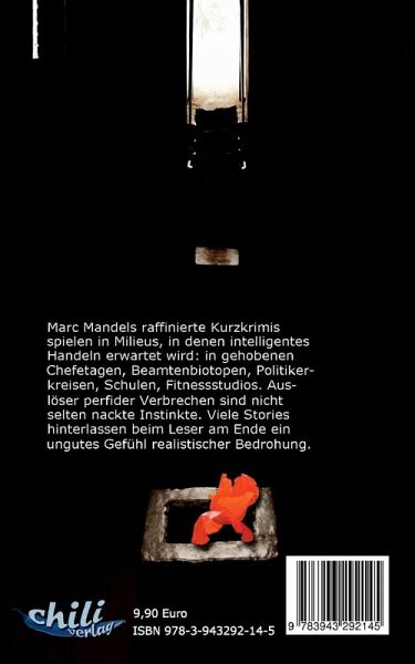 Marc Mandels raffinierte Kurzkrimis spielen in Milieus, in denen intelligentes Handeln erwartet wird. Weder gehobene Chefetagen, Beamtenbiotope, Politikerkreise noch Schulen und Fitnessstudios sind vor Korruption sicher.Auslöser perfider Verbrechen sind nicht selten nackte Instinkte. Exzesse, die durch virtuelle Scheinwelten erst möglich werden, hinterlassen beim Leser ein betretenes Gefühl echter Bedrohung. Die Stories sind nach dem letzten Wort selten (kaum) "zu Ende". Viele Stories hinterlassen beim Leser am Ende ein ungutes Gefühl realistischer Bedrohung.