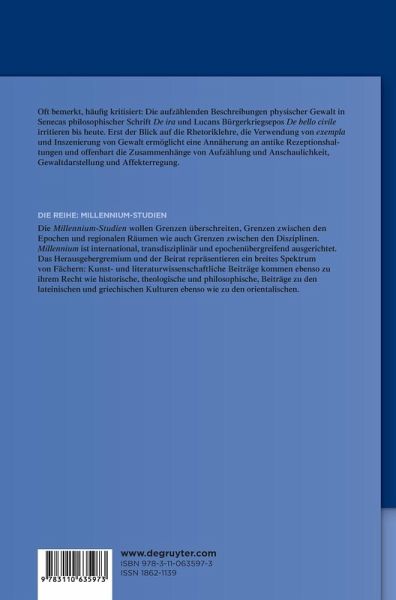 Die Schilderung physischer Gewalttaten wie Folter, Mord und Hinrichtung gilt als charakteristisch für die Literatur der 2. Hälfte des 1. Jhs. n. Chr., wurde aber bislang kaum befriedigend analysiert. Insbesondere aufzählende Abschnitte aus Senecas De ira und Lucans De bello civili sorgen für Irritation. Darum sucht dieses Buch die Annäherung an antike Rezeptionshaltungen.