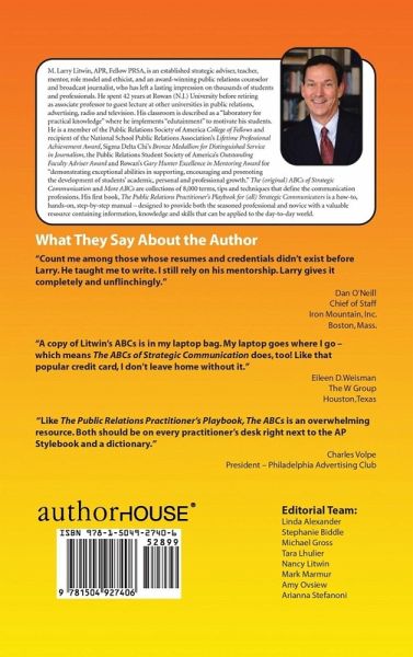 More ABCs of Strategic Communication -- Supplement to The ABCs is a prime example of quintessential teamwork. Like The ABCs, it is the go-to source for marketing and other strategic communication terms. Both ABCs represent the accomplishments of an incredibly talented team of outstanding strategic communication practitioners and counselors led by the commitment and dedication of senior editor Amy Ovsiew. Amy headed a team of nose-to-the-grindstone researchers and persuasive strategic writers and an award-winning graphics specialist. Together, we took a concept, honed it and produced major desk-top (computer) references that reviewers believe are standards for the industry -- the many disciplines that comprise the strategic communication professions. It all began when the first edition's senior editor Katie Hardesty raised the question, "Wouldn't it be great if there were a book of terms all communicators would find valuable?" That "outside-the-box" thinking, which included the unique approach of interspersing relationship marketing terms, tips and techniques throughout, has evolved into The ABCs of Strategic Communication and More ABCs. Like their companion The Public Relations Practitioner's Playbook for (all) Strategic Communicators (AuthorHouse - 2013), The ABCs books are jargon free and jam packed with communication ideas that work. What started as a 48-page booklet has grown to a combined 1,100 pages because the communication professions are so integrated and dependent on one another. The companion CD-ROM contains all of the 282 tips and techniques plus three supplemental strategic communication PowerPoints