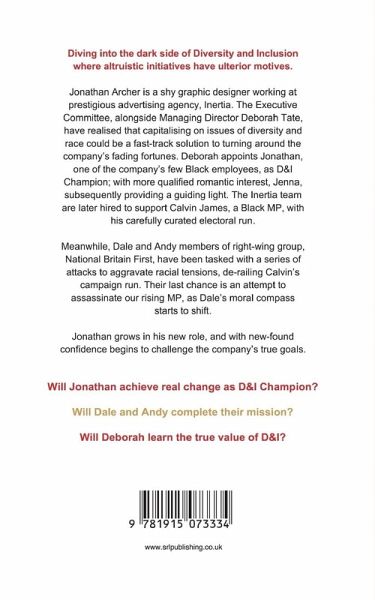 Diving into the dark side of Diversity and Inclusion where altruistic initiatives have ulterior motives. Jonathan Archer is a shy graphic designer working at prestigious advertising agency, Inertia. The Executive Committee, alongside Managing Director Deborah Tate, have realised that capitalising on issues of diversity and race could be a fast-track solution to turning around the company's fading fortunes. Deborah appoints Jonathan, one of the company's few Black employees, as D&I Champion; with more qualified romantic interest, Jenna, subsequently providing a guiding light. The Inertia team are later hired to support Calvin James, a Black MP, with his carefully curated electoral run. Meanwhile, Dale and Andy members of right-wing group, National Britain First, have been tasked with a series of attacks to aggravate racial tensions, de-railing Calvin's campaign run. Their last chance is an attempt to assassinate our rising MP, as Dale's moral compass starts to shift. Jonathan grows in his new role, and with new-found confidence begins to challenge the company's true goals. Will Jonathan achieve real change as D&I Champion? Will Dale and Andy complete their mission? Will Deborah learn the true value of D&I?