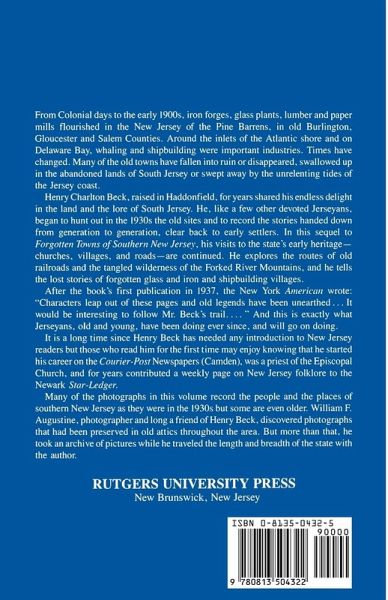 In this sequel to Forgotten Towns Of Southern New Jersey, the author visits to the state's early heritage--churches, villages, and roads--are continued. He explores the routes of old railroads and the tangled wilderness of the Forked River Mountains, and he tells the lost stories of forgotten glass and iron and shipbuilding villages.