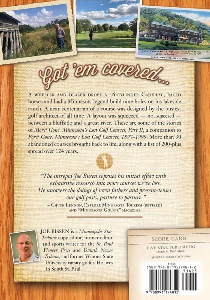 A follow-up to the award-winning 2014 book "Fore! Gone.", "More! Gone." makes a distinctive second swing into Minnesota's lost golf courses - their founders, their designers, the cities, towns, fields and pastures where they made their homes, the people who remembered them fondly or even otherwise, and their brushes with history. Among the cities with stories in "More! Gone.": Ada, Albert Lea, Cass Lake, Cold Spring, Deephaven, Donehower / Dakota, Foley, Foreston, Hastings, Hinckley, Lakeville, Luverne, Madelia, Milaca, Minneapolis, Oakdale, Pine City, Pokegama Township, Princeton, Red Lake Falls, Richmond, Rochester, Rush City, St. Augusta, St. Cloud, St. Joseph, St. Paul, Sauk Rapids, Shorewood, Twin Valley and Winona. Also in in the book is a list of the more than 220 known lost courses of all time in Minnesota.