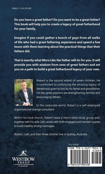 Do you have a great father? Do you want to be a great father? This book will help you to create a legacy of great fatherhood for your family. Imagine if you could gather a bunch of guys from all walks of life who had a great fathering experience and spend a few hours with them learning about the practical things that their fathers did. That is exactly what More Like the Father will do for you. It will provide you with wisdom from sons of great fathers and set you on a path to build a great fatherhood legacy of your own.