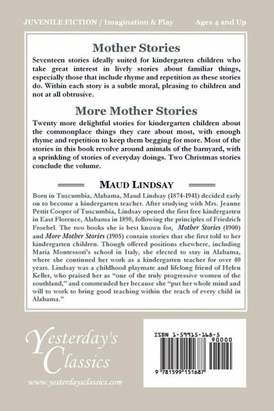 Twenty more delightful stories for kindergarten children about the commonplace things they care about most, with enough rhyme and repetition to keep them begging for more. Most of the stories in this book revolve around animals of the barnyard, with a sprinkling of stories of everyday doings. Two Christmas stories conclude the volume. Numerous black and white illustrations complement the text. Sequel to "Mother Stories" by same author. Suitable for ages 4 to 7.