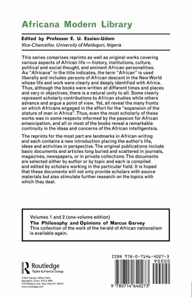 Marcus Garvey founded the Universal Negro Improvement Association in 1914. He was one of the first black leaders to encourage black people to discover their cultural traditions and history, and to seek common cause in the struggle for true liberty and political recognition. This book discusses his philosophy and opinions.