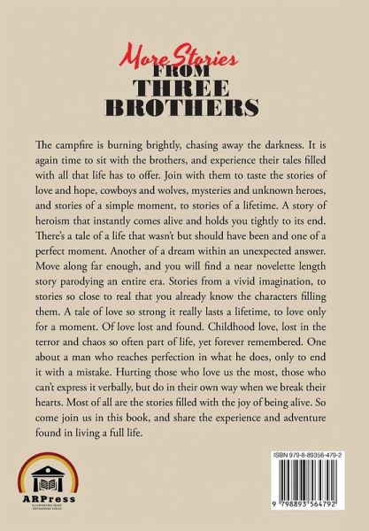 The campfire is burning brightly, chasing away the darkness. It is again time to sit with the brothers, and experience their tales filled with all that life has to offer. Join with them to taste the stories of love and hope, cowboys and wolves, mysteries and unknown heroes, and stories of a simple moment, to stories of a lifetime. A story of heroism that instantly comes alive and holds you tightly to its end. There's a tale of a life that wasn't but should have been and one of a perfect moment. Another of a dream within an unexpected answer. Move along far enough, and you will find a near novelette length story parodying an entire era. Stories from a vivid imagination, to stories so close to real that you already know the characters filling them. A tale of love so strong it really lasts a lifetime, to love only for a moment. Of love lost and found. Childhood love, lost in the terror and chaos so often part of life, yet forever remembered. One about a man who reaches perfection in what he does, only to end it with a mistake. Hurting those who love us the most, those who can't express it verbally, but do in their own way when we break their hearts. Most of all are the stories filled with the joy of being alive. So come join us in this book, and share the experience and adventure found in living a full life.