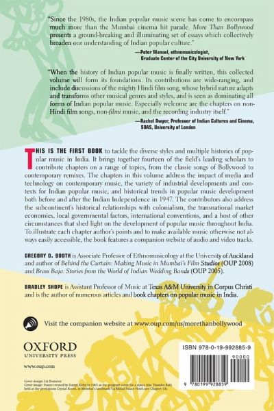 GREGORY D. BOOTH is an Associate Professor of Ethnomusicology in the Department of Anthropology at the University of Auckland and has been engaged in the study of Indian music and culture for more than thirty years. He is the author of two books: Behind the Curtain: Making Music in Mumbai's Film Studios (OUP 2008) and Brass Baja: Stories from the World of Indian Wedding Bands (OUP 2005). BRADLEY SHOPE is an Assistant Professor of Music at Texas A & M in Corpus Christi and holds a doctorate in ethnomusicology from Indiana University. His research interests include the history of western popular music in India and the musical life of the British Raj in the 19th and early 20th centuries. He has been especially interested in jazz in India from the 1920s to the 1940s and its intersection with early Hindi film music.