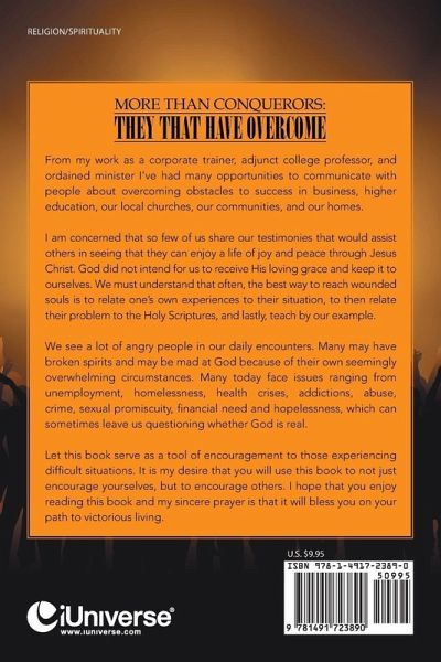 As a college professor, ordained minister, and corporate trainer there have been many opportunities to communicate with both Christians and non-Christians alike about overcoming obstacles to success in both the business arena, our local churches, and in our homes. Unfortunately, many saved persons do not testify about their own deliverance from a life of sin and despair to a life of joy and peace through Jesus Christ. Recently after I had given my testimony at a local church here in Indianapolis, a fellow minister stood up and said all of us have stories of deliverance we just don't tell others. He then began to detail some of his life's experiences. I have discovered that many of us can become upset with God because we somehow think that we are the only persons that deal with problems. These issues can range from, alcohol abuse, drug addiction, premarital sex, and unemployment to periods of time in which we struggle with our faith. It is my desire that you will use this book as a tool to not just encourage yourselves but to encourage others who are going through difficult times. I hope that you enjoy reading this book and my sincere prayer is that it will bless you on your path to victorious living.