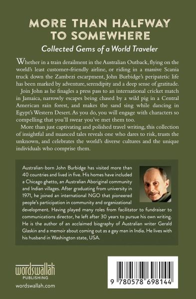 Whether in a train derailment in the Australian Outback, flying on the world's least customer-friendly airline, or riding shotgun in a massive Scania truck down the Zambezi escarpment, John Burbidge's peripatetic life has been marked by adventure, serendipity and a deep sense of gratitude. Join John as he finagles a press pass to an international cricket match in Jamaica, narrowly escapes being chased by a wild pig in a Central American rain forest, and makes the sand sing while dancing in Egypt's Western Desert. As you do, you will engage with characters so compelling that you'll swear you've met them too. More than just titillating and polished travel writing, this collection of insightful and nuanced tales reveals one who dares to risk, trusts the unknown, and celebrates the diversity of the world's cultures and the unique individuals who comprise them.