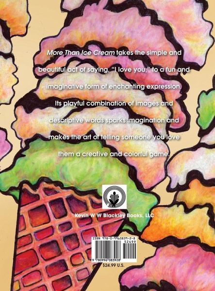 More Than Ice Cream takes the simple and beautiful act of saying, "I love you," to a fun and imaginative form of enchanting expression. Its playful combination of images and descriptive words sparks imagination and makes the art of telling someone you love them a creative and colorful game.