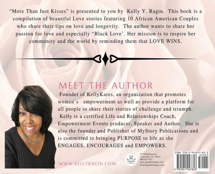 "More Than Just Kisses" is presented to you by Kelly Y. Ragin. This book is a compilation of beautiful love stories featuring 10 African American couples who share their tips on love and longevity. The author wants to share her passion for love and especially "Black Love". Her mission is to inspire her community and the world by reminding them that LOVE WINS.