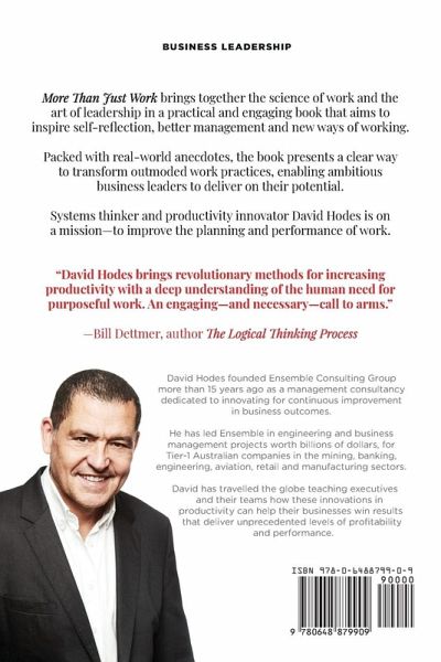 Systems thinker and productivity innovator David Hodes is on a mission-to improve the planning and performance of work. More Than Just Work brings together the science of work and the art of leadership in a practical and engaging book that aims to inspire self-reflection, better management and new ways of working. Packed with real-world anecdotes, the book presents a clear way to transform outmoded work practices, enabling ambitious business leaders to deliver on their potential.