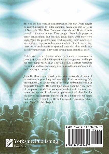 He was the hot topic of conversation in His day. From angels to ardent disciples to bitter enemies, much was said of Jesus of Nazareth. The New Testament Gospels and Book of Acts record 114 conversations. They ranged from high praise to bitter denunciation. But did they really know what they were saying? Just like preaching and teaching today, finite minds were attempting to express truth about an infinite God. In each case, there were implications of spiritual truth that they could not possibly understand. They were saying more than they knew. This book is an exploration of each of these conversations. In these pages, you will find inspiration, encouragement, and hope for daily living. More Than They Knew also contains resources for pastors and teachers, many drawn from the author's own life and ministry experience.