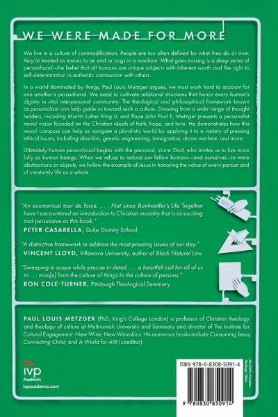 In a world dominated by things, we must work hard to account for one another's personhood. Drawing a diverse set of thought leaders, Paul Louis Metzger helps us navigate a pluralistic world through a personalist moral framework, addressing issues such as abortion, genetic engineering, immigration, drone warfare, and more.