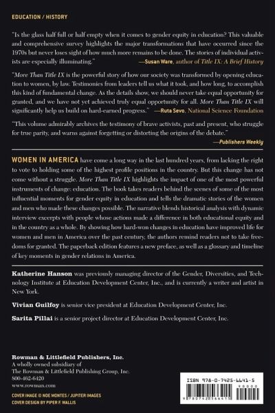 More Than Title IX highlights the impact of one of the most powerful instruments of change toward greater gender equality in America—education. The book takes readers behind the scenes of some of the most influential moments and tells the dramatic stories of those who made these changes possible. By showing how these changes have improved life for women, the authors remind readers not to take freedoms for granted.