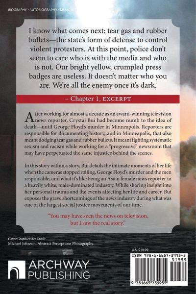 After working for almost a decade as an award-winning television news reporter, Crystal Bui had become numb to the idea of death-until George Floyd's murder in Minneapolis. Reporters are responsible for documenting history, and in Minneapolis, that also meant dodging tear gas and rubber bullets. It meant fighting systematic sexism and racism while working for a "progressive" newsroom that may have perpetuated the same injustice behind the scenes. In this story within a story, Bui details the intimate moments of her life when the cameras stopped rolling, George Floyd's murder and the men responsible, and what it's like being an Asian female news reporter in a heavily white, male-dominated industry. While sharing insight into her personal trauma and the events affecting her life and career, Bui exposes the grave shortcomings of the news industry during what was one of the largest social justice movements of our time.