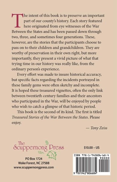 The intent of this book is to preserve an important part of our county's history. Each story featured here originated from eye witnesses of the War Between the States and has been passed down through two, three, and sometimes four generations. These, however, are the stories that the participants choose to pass on to their children and grandchildren. They are worthy of preservation in their own right, but more importantly, they present a vivid picture of what that trying time in our history was really like, from the ordinary person's experience. Every effort was made to insure historical accuracy, but specific facts regarding the incidents portrayed in these family gems were often sketchy and incomplete. It is hoped these treasured vignettes, often the only link between twentieth century families and their ancestors who participated in the War, will be enjoyed by people who wish to catch a glimpse of that historic period.