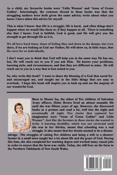 Come on another journey with Helen Brown as she takes us through 100 times that God has taken her ordinary, everyday, 'water' moments and transformed them into moments of 'wine' inspiration. Let Helen's small triumphs and lessons encourage you that God is interested in your everyday 'water' moments too and He will teach you your own lessons, if you stop to let him speak.