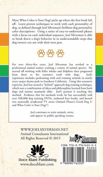 More What Color is Your Dog? picks up where the first book left off. Learn proven techniques to work with each personality of dog, as defined through Joel Silverman's brilliant dog personality color descriptions. Using a series of easy-to-follow phases with a focus on each individual sequence, Joel Silverman is able to break down a dog's behavior into understandable steps that dog owners can use with their own pets.