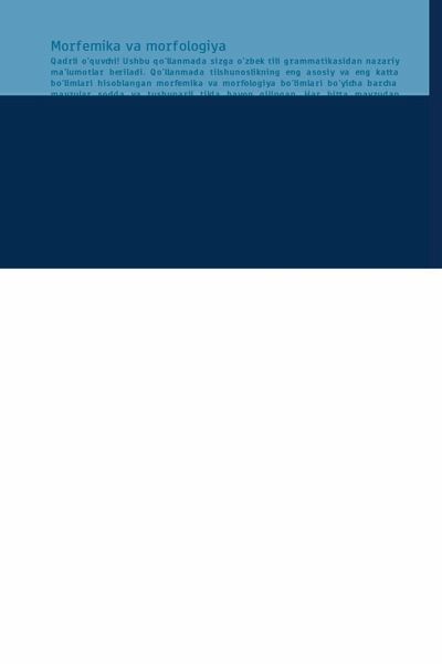 Qadrli o'quvchi! Ushbu qo'llanmada sizga o'zbek tili grammatikasidan nazariy ma'lumotlar beriladi. Qo'llanmada tilshunoslikning eng asosiy va eng katta bo'limlari hisoblangan morfemika va morfologiya bo'limlari bo'yicha barcha mavzular sodda va tushunarli tilda bayon qilingan. Har bitta mavzudan so'ng, mavzu yuzasidan savollar va topshiriqlar, shuningdek mavzuni mustahkamlash uchun mashqlar berilgan. Bu esa mavzuni esda qolishini ta'minlaydi. Mavzular to'liq yoritilgan bo'lib, bu mavzularni o'rganish uchun boshqa hech qanday qo'shimcha qo'llanmaga muhtoj bo'lmaysiz. Mavzular strukturalar va jadvallar asosida berilganligi o'rganuvchiga qulaylik tug'diradi. Mavzular bir-biriga bog'liq holda berilgan. Qo'llanmani tuzishda hozirda amalda bo'lgan maktab, litsey, kollej darsliklaridan ham foydalanilgan, bu esa bu qo'llanmadan abituriyentlar ham foydalanishi mumkinligini anglatadi.Bu qo'llanmadan hech qanday muammo va chalkashliklarga uchramay morfemika va morfologiya bo'limlarini oson o'rgana olasiz. Kitob o'quvchilar, abituriyentlar va soha bilan qiziqqan barcha kitobxonlar uchun mo'ljallangan. Sizga ilm olishdek mashaqqatli yo'lda sabr va omad tilaymiz.