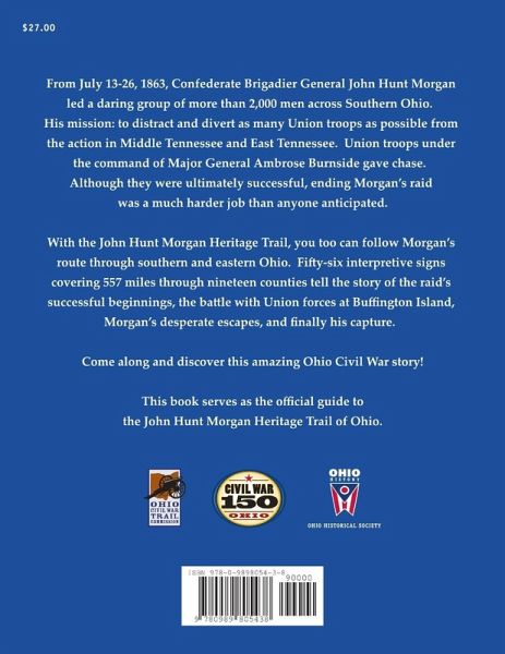 This book serves as the official guide to the John Hunt Morgan Heritage Trail of Ohio. From July 13-26, 1863, Confederate Brigadier General John Hunt Morgan led a daring group of more than 2,000 men across Southern Ohio. His mission: to distract and divert as many Union troops as possible from the action in Middle Tennessee and East Tennessee. Union troops under the command of Major General Ambrose Burnside gave chase. Although they were ultimately successful, ending Morgan's raid was a much harder job than anyone anticipated. With the John Hunt Morgan Heritage Trail, you too can follow Morgan's route through southern and eastern Ohio. Fifty-six interpretive signs covering 557 miles through nineteen counties tell the story of the raid's successful beginnings, the battle with Union forces at Buffington Island, Morgan's desperate escapes, and finally his capture. Come along and discover this amazing Ohio Civil War story!
