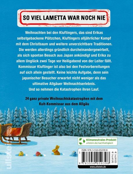 Dezember lesen und an Heiligabend zum Abschluss bringen; praktisch habe ich die Geschichte nun am…mehr„Morgen, Klufti, wird’s was geben“ ist nicht einfach nur eine Weihnachtsgeschichte, sondern in 24 Kapitel unterteilt, die hier vielsagend bereits „Katastrophen“ genannt werden, und somit gar ein Lese-Adventskalender. Theoretisch könnte man diesen Klufti also kapitel- bzw. katastrophenweise ab dem 1. Dezember lesen und an Heiligabend zum Abschluss bringen; praktisch habe ich die Geschichte nun am Stück gelesen und es letztlich schade gefunden, dass sich die 24 Katastrophen nicht tatsächlich an den 24 Dezembertagen bis zum Heiligen Abend ereignen, denn einen quasi tagesaktuellen Adventskalender zum Lesen hätte ich doch sehr begrüßt. Diese Kluftinger-Geschichte setzt nun erst zwei Tage vor dem Weihnachtsfest an, als Kluftis Frau Erika sich beim Sturz von der Leiter eine Beinverletzung zuzieht und zu Kluftis Widerwillen vom Arzt ins nächste Spital manövriert wird, obschon sie doch noch so viel fürs Fest vorzubereiten hat, was nun von Kluftinger übernommen werden muss.