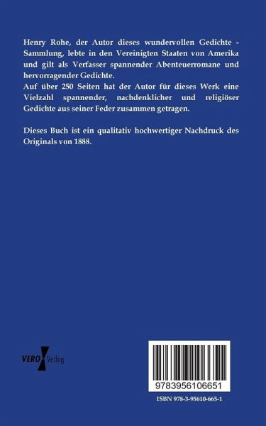 Henry Rohe, der Autor dieses wundervollen Gedichte - Sammlung, lebte in den Vereinigten Staaten von Amerika und gilt als Verfasser spannender Abenteuerromane und hervorragender Gedichte.