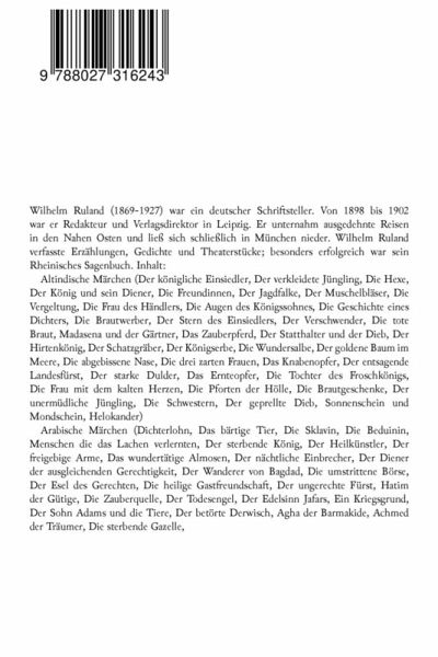 In "Morgenländische Märchen" präsentiert Wilhelm Ruland eine faszinierende Sammlung von 79 Kindermärchen aus dem Orient, die in einem farbenfrohen und lebendigen Stil erzählt werden. Die Märchen entführen die Leser in eine Welt voller Magie, Abenteuer und tiefer Weisheiten, wobei sie die kulturelle Vielfalt und den Reichtum orientalischer Erzähltraditionen widerspiegeln. Ruland gelingt es, den Leser durch poetische Sprache und bildhafte Beschreibungen in eine zauberhafte Atmosphäre zu ziehen, die sowohl Kinder als auch Erwachsene in ihren Bann zieht. Die Auswahl der Märchen zeigt nicht nur die Faszination des Orients, sondern auch die universellen Themen von Mut, Freundschaft und der Suche nach Glück, die in jeder Kultur ihre Gültigkeit haben. Wilhelm Ruland, ein engagierter Schriftsteller und Übersetzer, nahm sich der Aufgabe an, orientalische Märchen einem breiten Publikum zugänglich zu machen. Sein Interesse an fremden Kulturen und Traditionen, gepaart mit seiner tiefen Leidenschaft für die Märchenliteratur, verweben sich in dieser Sammlung zu einem eindrucksvollen Zeugnis der Erzählkunst. Ruland möchte mit seinen Erzählungen die Neugier und das Verständnis für das kulturelle Erbe des Orients wecken und gleichzeitig eine Brücke zwischen verschiedenen Weltanschauungen schlagen. Dieses Buch ist nicht nur eine Bereicherung für Märchenliebhaber, sondern auch ein wertvolles Bildungsangebot für Kinder und Erwachsene gleichermaßen. Jedes Märchen lädt dazu ein, über wichtige Lebenslektionen nachzudenken und fördert die Fantasie und Kreativität. Lesen Sie "Morgenländische Märchen" und lassen Sie sich von den Zauberwelten des Orients inspirieren, die zeitlos und universell sind.