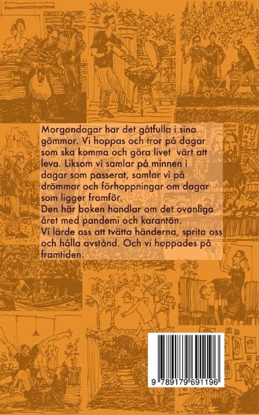 Morgondagar har det gåtfulla i sina gömmor. Vi hoppas och tror på dagar som ska komma och göra livet värt att leva. Liksom vi samlar på minnen i dagar som passerat, samlar vi på drömmar och förhoppningar om dagar som ligger framför. Den här boken handlar om det ovanliga året med pandemi och karantän. Vi lärde oss att tvätta händerna, sprita oss och hålla avstånd. Under våren 2020 blev vi försiktiga och fick hjälp av yngre släktingar med att handla mat. Vi ställde in tandläkarbesök och vi gick inte till frisören. Livet fick gå ner i varv och vi lyssnade på Anders Tegnell för att få goda råd om hur vi skulle överleva.