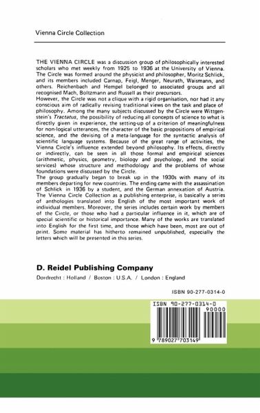 1. The Fundamental Problem of Aesthetics, Seen in an Evolutionary Light ('Das Grundproblem der Ästhetik in entwicklungsgeschichtlicher Beleuchtung', 1909).- 2. The Boundaries of Scientific and Philosophical Concept-Formation ('Die Grenze der naturwissenschaftlichen und philosophischen Begriffsbildung', 1910).- 3. The Nature of Truth in Modern Logic ('Das Wesen der Wahrheit nach der modernen Logik', 1910).- 4. The Present Task of Philosophy ('Die Aufgabe der Philosophie in der Gegenwart', 1911).- 5. What Is Knowing? ('Was ist Erkenntnis?', 1911/12).- 6. Is There Intuitive Knowledge? ('Gibt es intuitive Erkenntnis?', 1913).- 7. The Philosophical Significance of the Principle of Relativity ('Die philosophische Bedeutung des Relativitätsprinzips', 1915).- 8. Ideality of Space, Introjection and the Psycho-Physical Problem ('Idealität des Raumes, Introjektion und psychophysisches Problem', 1916).- 9. Space and Time in Contemporary Physics (Raum und Zeit in der gegenwärtigen Physik, 1917).- 10. Appearance and Essence ('Erscheinung und Wesen', 1917).- 11. On the Value of Knowledge ('Vom Wert der Erkenntnis', 1918).- 12. Philosophical Reflections on the Causal Principle ('Naturphilosophische Betrachtungen über das Kausalprinzip', 1920).- 13. Critical or Empiricist Interpretation of Modern Physics? ('Kritizistische oder empiristische Deutung der neuen Physik?, 1921).- 14. Helmholtz the Epistemologist ('Helmholtz als Erkenntnistheoretiker', 1921).- 15. The Theory of Relativity in Philosophy ('Die Relativitätstheorie in der Philosophie', 1922).- Moritz Schlick Bibliography.- Index Of Names.- Index Of Subjects.