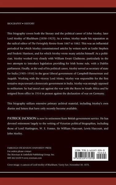 This biography covers both the literary and political career of John Morley, later Lord Morley of Blackburn (1838-1923). As a writer, Morley made his reputation as the radical editor of The Fortnightly Review from 1867 to 1882. This was an influential periodical for which Morley commissioned articles by writers such as Leslie Stephen and Frederic Harrison, and for which Morley wrote many articles himself. As a politician, Morley worked very closely with William Ewart Gladstone, particularly in the two attempts to introduce legislation providing for Irish home rule, with a Dublin parliament. Finally, at the end of his political career, Morley served as secretary of state for India (1905-1910) in the great Liberal government of Campbell-Bannerman and Asquith. Working with the viceroy Lord Minto, Morley was responsible for the first tentative steps toward a democratic government in India. Morley was strongly opposed to militarism: he had stood out against the war with the Boers in South Africa and he resigned from office in 1915 in protest against the declaration of war on Germany. This biography utilizes extensive primary archival material, including Morley's own diaries and letters, which have only recently become available.