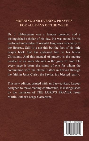 Morning and Evening Prayers for All Days of the Week. Together With Confessional, Communion, and Other Prayers and Hymns. New edition with the inclusion of THE LORD'S PRAYER From Martin Luther's Large Catechism.