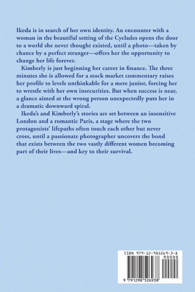 Ikeda is in search of her own identity. An encounter with a woman in the beautiful setting of the Cyclades opens the door to a world she never thought existed until a photo-taken by chance by a perfect stranger-offers her the opportunity to change her life forever. Kimberly is just beginning her career in finance. The three minutes she is allowed for a stock market commentary raises her profile to levels unthinkable for a mere junior, forcing her to wrestle with her own insecurities. But when success is near, a glance aimed at the wrong person unexpectedly puts her into a dramatic downward spiral. Ikeda's and Kimberly's stories are set between an insensitive London and a romantic Paris, a stage where the two protagonists' life-paths often touch each other but never cross, until a passionate photographer uncovers the bond that exists between the two vastly different women, becoming part of their lives-and key to their survival.