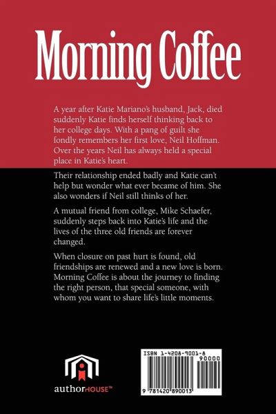 A year after Katie Mariano's husband, Jack, died suddenly Katie finds herself thinking back to her college days. With a pang of guilt she fondly recalls her first love, Neil Hoffman. Over the years Neil has always held a special place in Katie's heart. Their relationship ended badly and Katie can't help but wonder what ever became of him. She also wonders if Neil still thinks of her. A mutual friend from college, Mike Schaefer, suddenly steps back into Katie's life and the lives of the three old friends are forever changed. When closure on past hurt is found, old friendships are renewed and a new love is born. Morning Coffee is about the journey to finding the right person, that special someone, with whom you want to share life's little moments.