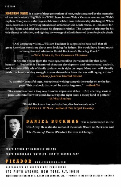 Morning Dark is a story of three generations of men, each consumed by the memories of war and violence. Big Walt is a WWII hero, his son Walt a Vietnam veteran, and Walt's nephew Tom Jane a thirty-year-old career soldier now dishonorably discharged. When Walt, drawn into a harrowing situation on unfamiliar soil, needs rescue, so Tom must forfeit his failure and grief and rescue his desperate relative. The dangerous trip may be his only chance at salvation.