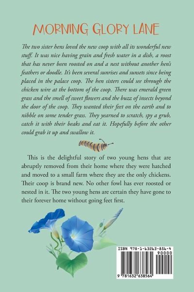 Two young hens are chicken napped from the farm they were hatched. After a very scary trip in the trunk of a car the hens arrive at their new home. The coop is brand new. It has new feeding and watering dishes, fresh straw in the nest and no doodle (poop) on the coop floor or roost. The hens love the new forever home, however they can see through the chicken wire the crawling and flying bugs among the fragrant flowers. The hens are hoping soon to be allowed out of the coop to peck and scratch among the flowers and catch a bug. This is the story of two young hens. They have been purchased by Bright Hair and Ball Cap. Bright Hair and Ball Cap are a middle aged couple who do not have any experience raising chickens and their first mistake is not taking the farmer's advice about naming the hens.