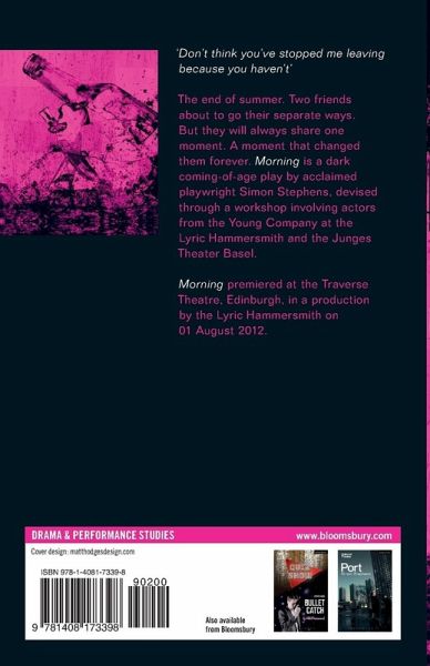 'I missed first time. I could feel his skull caving in. It was like a shell.' Morning - a play for young people - is the latest offering from acclaimed playwright Simon Stephens, written after a workshop involving actors from the Young Company at the Lyric, Hammersmith and the Theater, Basel, Switzerland. It's the end of summer in a small, claustrophobic town and two friends are about to go their separate ways: one to university; the other will be staying local. But no matter what separates them, they will always share one moment: a moment that changed them forever. This dark coming-of-age play, to be performed by the Lyric Young Company, is a disturbing look at the cruel acts we are capable of committing; our society's numbness to physical pain; and the consequences of our actions. This programme text will coincide with the Lyric's production of the play at the Traverse Theatre, Edinburgh as part of the Festival (2 - 22nd September) followed by a brief run at the Lyric Hammersmith, London in September.