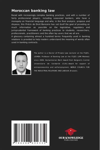 Faced with increasingly complex banking practices, and with a number of fairly professional players, including seasoned bankers, who have a monopoly on financial language and who, in the final analysis, propose and dispose, this Précis de Droit Bancaire has set itself the goal of providing as much information as possible on the legislative, regulatory and jurisprudential framework of banking practices to students, researchers, professionals, practitioners and the often lay users that we all are. A glossary containing almost a hundred terms frequently used in banking relations is provided to help readers understand the meaning of words often used in banking contracts.