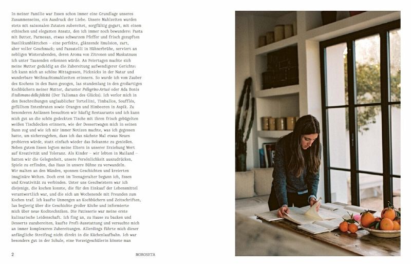 In Moroseta präsentiert sie Rezepte, die vom Frühstück über das Mittagessen bis hin zum Abendessen reichen und klassische italienische Aromen mit einer Prise Erfindungsreichtum kombinieren.