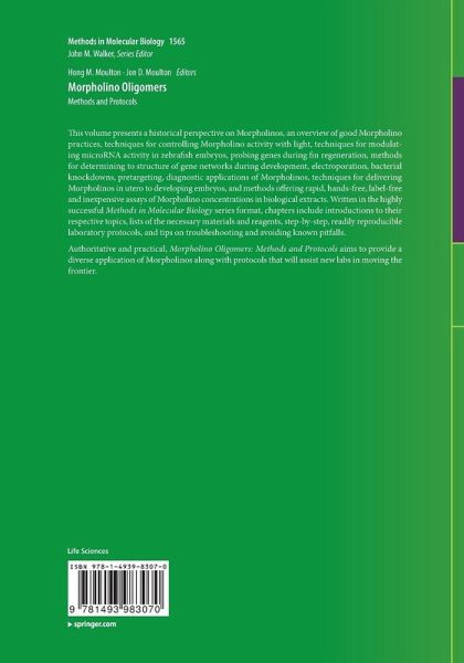 Morpholino Oligomers: Methods and Protocols aims to provide a diverse application of Morpholinos along with protocols that will assist new labs in moving the frontier.